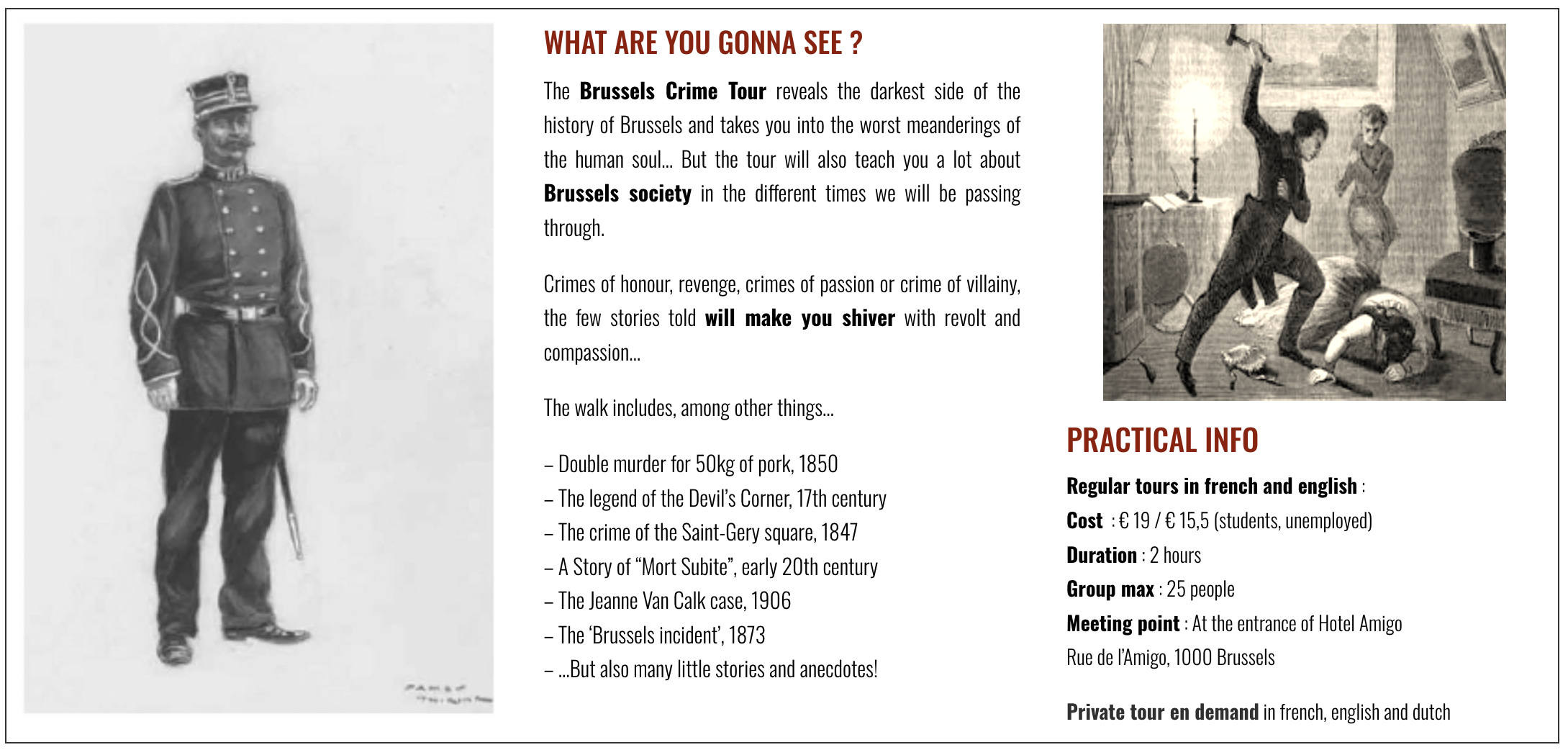 Ever heard of the legend of the Devil’s Corner? What do you know about the crime of the Saint-Gery square? For the curious souls with an eye on the dingy side of the road, then a tour in the dark alleys with the Brussels Crime Tour is a must.